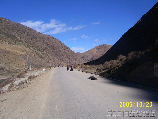 十幾公里后,他終于超了過去,超過我時還笑咪咪的問我去哪里,我說去新都橋。前面不遠(yuǎn)的一個山坳里,藏民早已等在那里。見我趕上來,他朝我走過來,示意我下車。我預(yù)感事情不妙,來者不善。